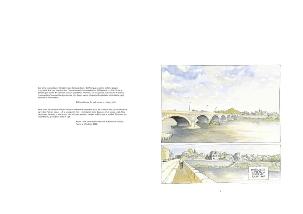 Via son roman graphique, Étienne Davodeau fait de la Loire un être à part entière en éludant l’article défini : Loire parle et agit toute en sensations sur les protagonistes de l’histoire. C’est un lieu de vie, de mort, d’accueil. Sa présence, le paysage viennent littéralement border les aspects les plus émotionnels de l’histoire. Beaucoup de thèmes sont abordés avec un côté impressionniste et sensible.